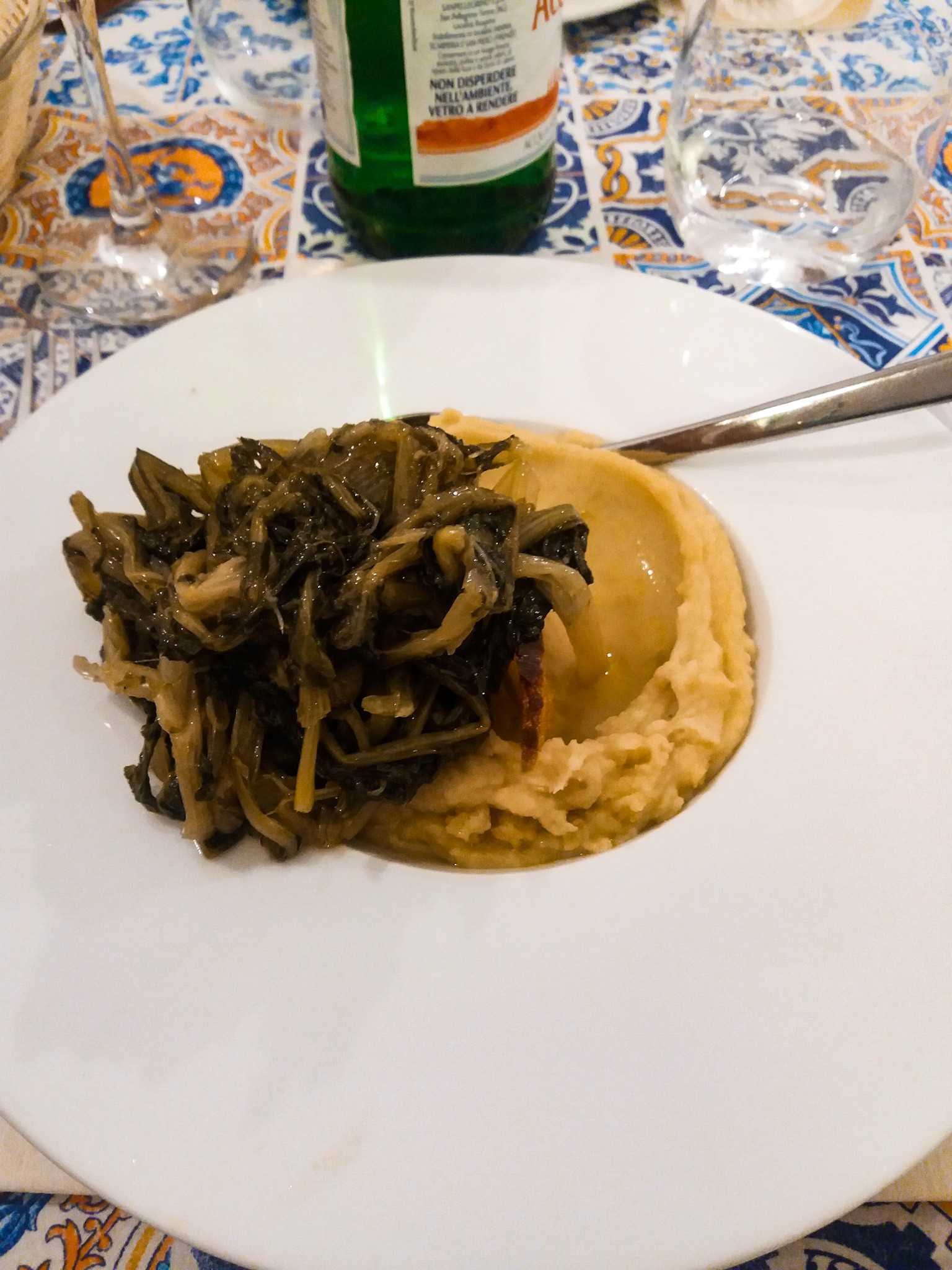 - Purea di fave e cicorie : purée de pois chiches accompagnée de scarole